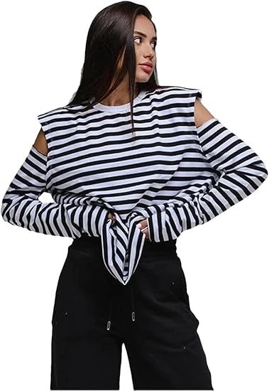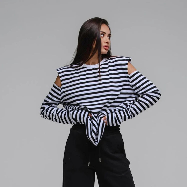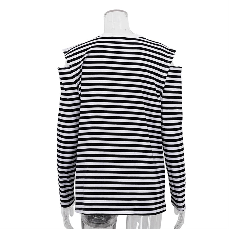 Women's Off-Shoulder Stripe Top - Long Sleeve Casual Blouse