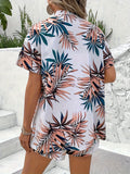 Women's Leaf Print Two Piece Set - Open Front Top & Drawstring Shorts